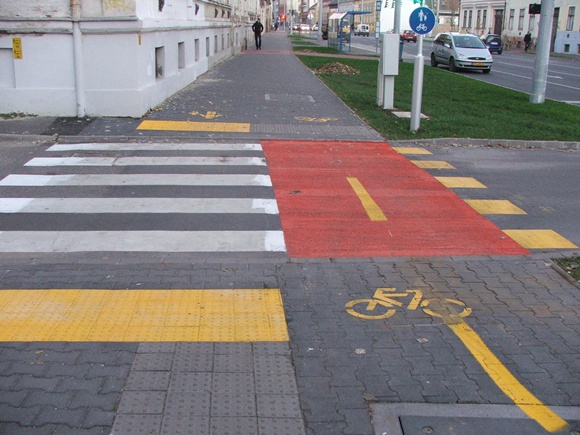 A másik, hogy aki ezt a kerékpárút-kövezést kitalálta, azt ezen járatnám egész életében. Arról nem is beszélve, hogy a Posta épületénél autóforgalom fogja keresztezni a bicikiutat, ami miatt az a rész erőteljesebb igénybevételnek lesz kitéve, és valószínűleg hamar megsüllyed majd.